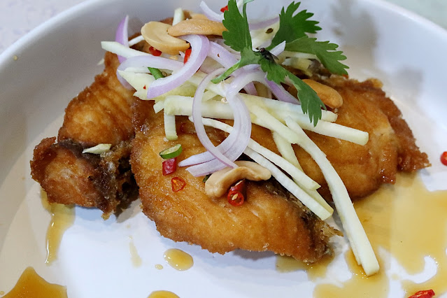 ทอดมาแบบกรอบนอกนุ่มใน ราดน้ำปลากวนเค็มๆหวานๆ เสิร์ฟพร้อมกับ ยำมะม่วง จานนี้ต้องมีสั่งซ้ำแน่นอน แต่เสียดายที่ น้ำยำมะม่วงให้มาน้อยไปหน่อย ถ้าเพิ่มอีกนิดจะดีมากเลยครับ